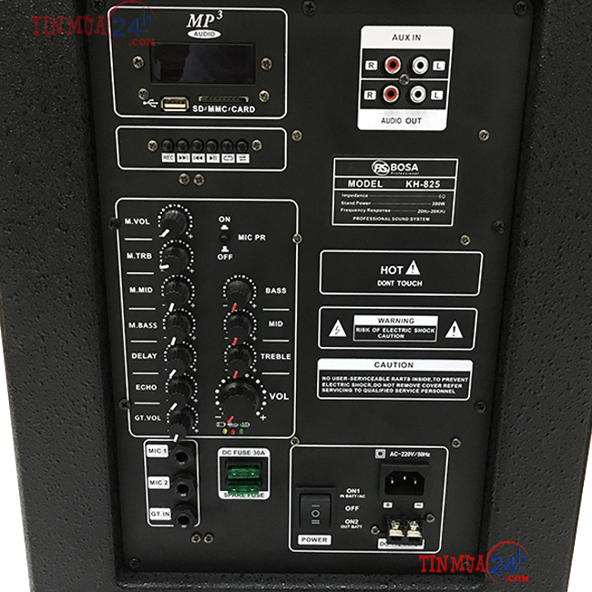 kéo di động 2 bass đôi Bosa KH 825 sử dụng nguồn điện 220V làm nguồn sạc