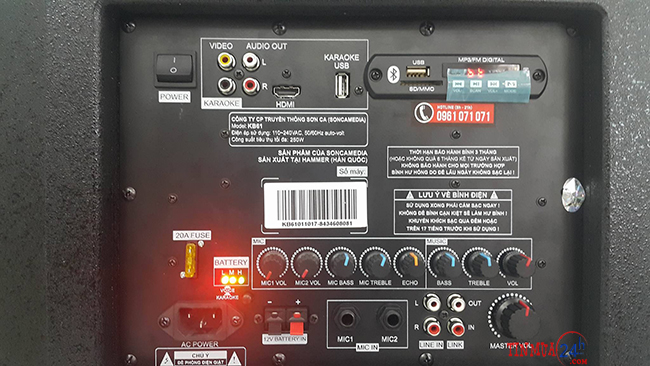 AUX OUT: kết nối âm thanh với loa SUB để tăng công suất phát