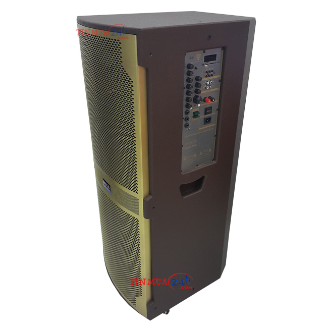 bên trong. Logo của hãng được in khá to và rõ ở mặt trước của loa. Loa keo keo cao cấp HNA 215 cũng được trang bị tay cầm, tay kéo