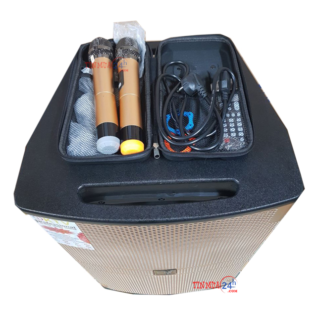 rất tiện lợi những khi không có điện. Đi kèm với loa là cặp micro không dây sử